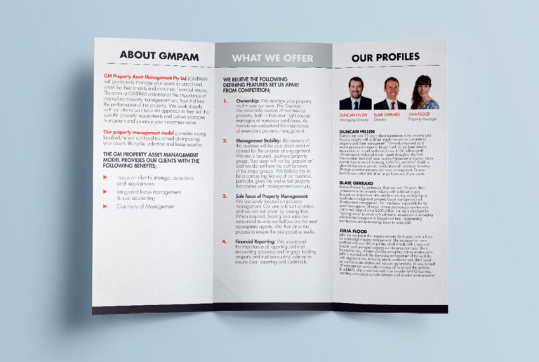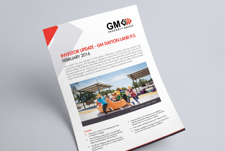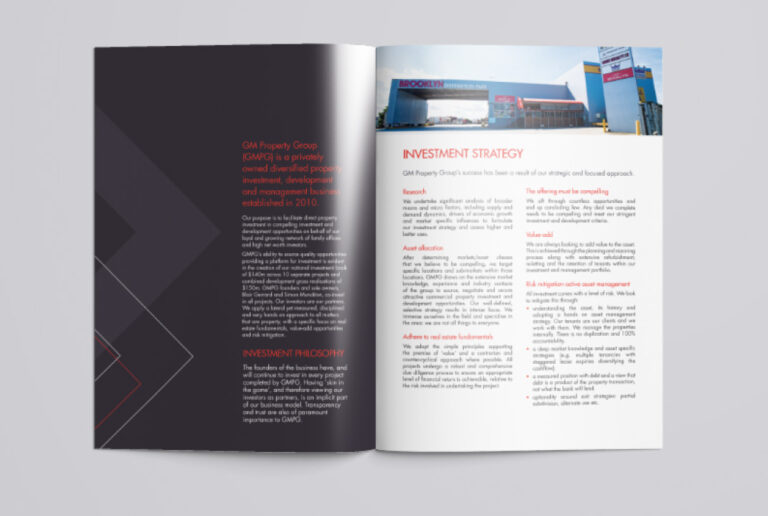 GM Property Group frequently requires regular, varied collateral for their Property Development and Property Management investors. Slick Design has created and printed everything from monthly Investment Newsletters and DL Brochures to their Business Cards and 8pp Promotional Brochure. The Slick Design team ensures all deliverables preserve brand identity while incorporating a fresh, modern look.